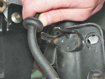 8. Выводим тормозной шланг из кронштейна стойки.