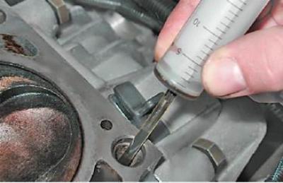 8. Перед заворачиванием окунаем резьбовую часть болтов в моторное масло, после чего даем маслу стечь, выждав около получаса.