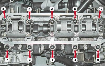 5. Снимаем крышку головки блока цилиндров (см. "Крышка головки блока цилиндров двигателей 2111 и 21114 (8v) - снятие и установка, замена прокладки").