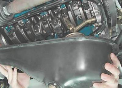 Устанавливаем новую прокладку и поддон в обратной последовательности.