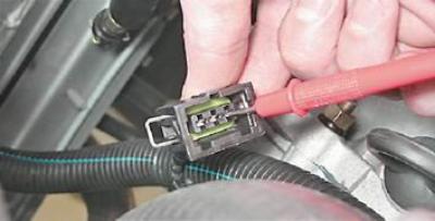 Замечание. Напряжение на выводе должно быть не меньше 12 В. Если напряжение не поступает на колодку или оно меньше 12 В, значит, разряжена аккумуляторная батарея, неисправна цепь питания или неисправен ЭБУ.