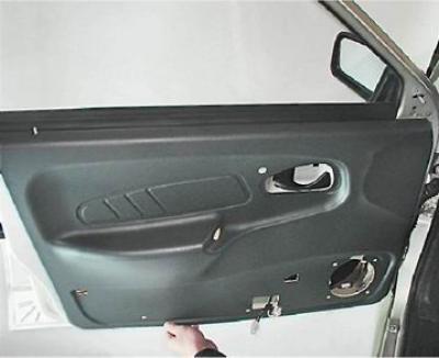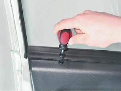 Предупреждение! При снятии обивки двери высока вероятность поломки ее пластмассовых держателей, поэтому перед началом работы запаситесь достаточным количеством новых держателей.