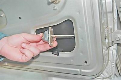 4. Вынимаем ограничитель через окно в усилителе двери.