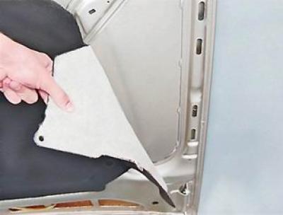 4. Снимаем обивку с капота.