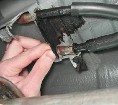 11. Вынимаем трос из двух кронштейнов крепящих его к днищу кузова.