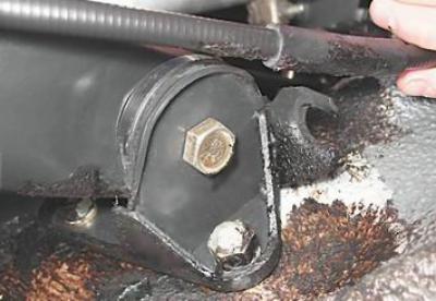 12. Вынимаем трос из кронштейна балки задней подвески.