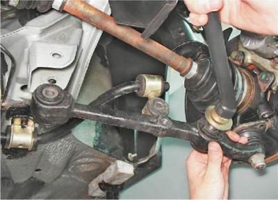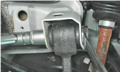 5. Вынимаем болт крепления стойки стабилизатора к рычагу (см. "Стабилизатор поперечной устойчивости - замена стоек").