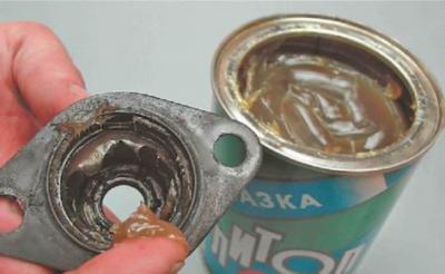1. Закладываем смазку (ШРБ-4, Литол-24 или аналогичную) в шарнир шаровой опоры.