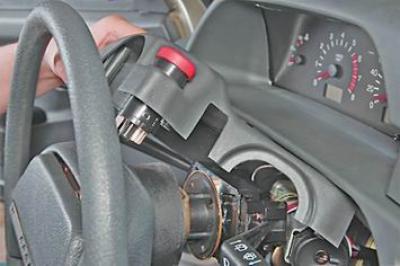 3. Перемещаем рычаг фиксации рулевой колонки вниз до упора и опускаем рулевую колонку.
