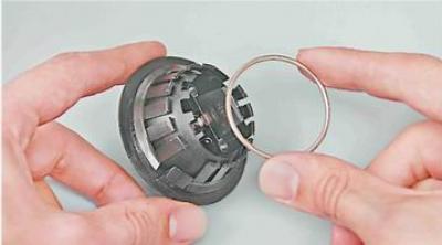 2. Шлицевой отверткой с тонким лезвием поддеваем и снимаем пружинное кольцо.