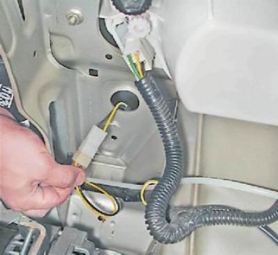 Замечание: Соединительная колодка левой противотуманной фары расположена под левой блок-фарой (на фото аккумуляторная батарея снята для наглядности).