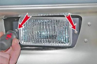 4. Крестовой отверткой отворачиваем два самореза крепления противотуманной фары.