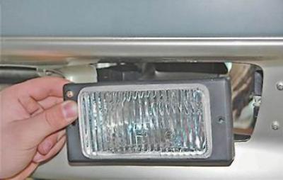 Соединительная колодка правой противотуманной фары расположена с правой стороны от радиатора системы охлаждения двигателем.