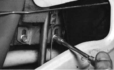 6. Выверните два болта крепления кронштейна опускного стекла к ползуну стеклоподъемника.
