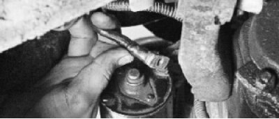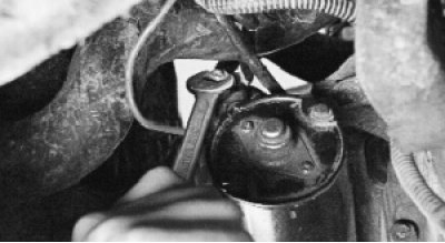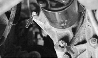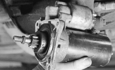6. Отверните три гайки крепления стартера к картеру сцепления…