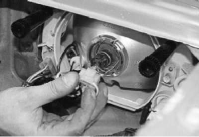 4. Отсоедините колодку жгута проводов с выводов лампы.