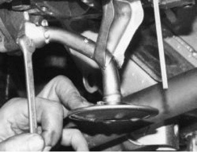 9. Выверните болт крепления маслоприемника к масляному насосу и снимите маслоприемник.