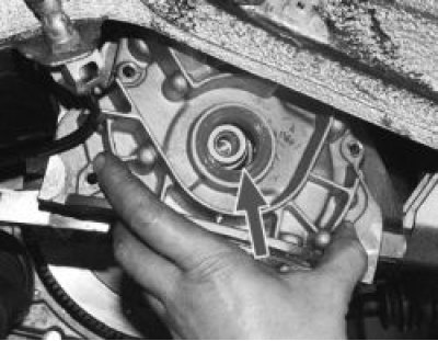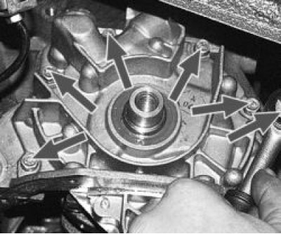 12. …и снимите насос с коленчатого вала.