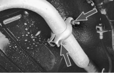 1. Отверните гайки болтов крепления хомута, выньте болты и снимите хомут. Отсоедините трубу глушителя от трубы резонатора, вынув уплотнительное кольцо.