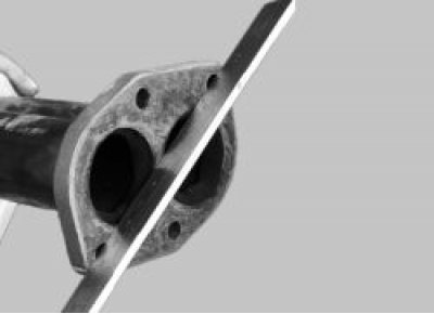 8. Проверьте плоскостность фланца приемной трубы. Для этого проведите ребром металлической линейки по поверхности фланца. Если в отдельных местах линейка прилегает неплотно, значит, фланец покороблен и приемную трубу необходимо заменить.