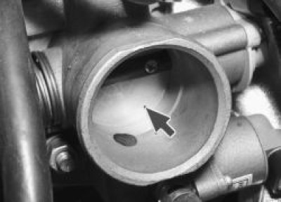 2. При полностью нажатой педали акселератора (это должен сделать помощник) проверьте положение дроссельной заслонки — она должна быть полностью открыта.