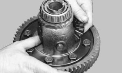8. Проверьте состояние ведомой шестерни коробки передач. При наличии сколов, выкрашиваний и значительной выработки зубьев замените шестерню. На автомобиль устанавливают шестерни главной передачи с различным передаточным отношением.