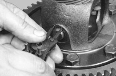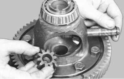 4. Выньте из корпуса дифференциала ось сателлитов и два сателлита.