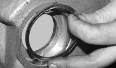 11. Затем выпрессуйте наружные кольца из картеров коробки передач и сцепления специальным съемником.