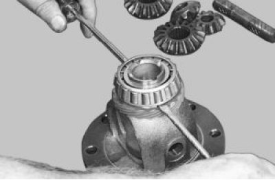 10. Для замены подшипников с помощью съемника спрессуйте их с дифференциала. В результате подшипники разрушаются.