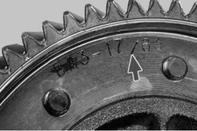 На ведомой шестерне выбито количество зубьев ведущей 1 и ведомой 2 шестерен.
