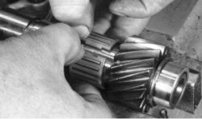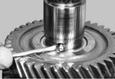 Примечание. При замене блокирующего кольца проверьте зазор между новым кольцом и шестерней. Проверьте правильность конусной поверхности кольца, надев его на конус шестерни и покачав рукой; люфт недопустим.