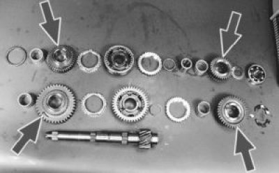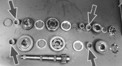 Предупреждение! Обязательно маркируйте игольчатые подшипники и втулки в соответствии с номером передачи. При сборке их надо установить на те же места. Удобнее всего вставить в шестерню соответствующий игольчатый подшипник и (где она есть) втулку…