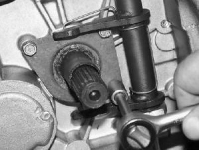 3. Снимите механизм выбора передач и затем выньте шток выбора передач (см. «Разборка коробки передач и дефектовка ее деталей»).