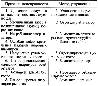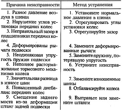 Самовозбуждающее угловое колебание передних колес