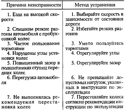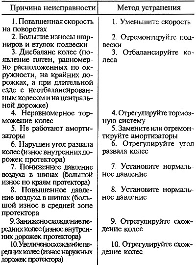 Неравномерный износ протектора