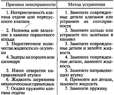 Недостаточное сопротивление амортизатора при ходе отдачи