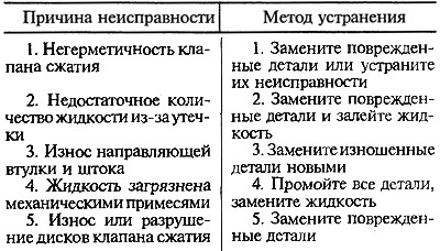 Недостаточное сопротивление амортизатора при ходе сжатия