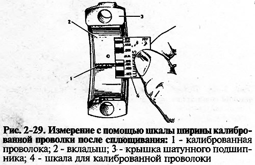 - снимите крышку и по шкале, нанесенной на упаковке, по сплющиванию проволоки (рис. 2-29) определите величину зазора.