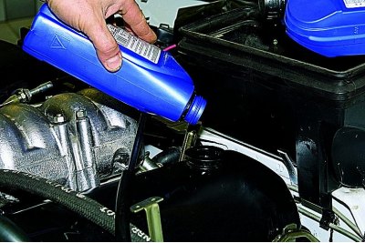 Запускаем двигатель. После того как на панели приборов погаснет контрольная лампа давления масла, останавливаем двигатель. Еще раз проверяем уровень масла. При необходимости доливаем.
