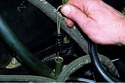 …извлекаем из направляющей трубки указатель уровня масла (щуп).