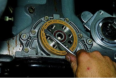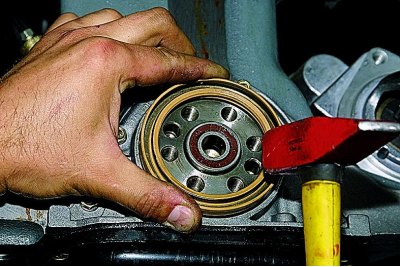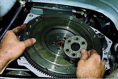 Демонтируем ведомый и ведущий диски сцепления (см. Замена ведомого и ведущего дисков сцепления).