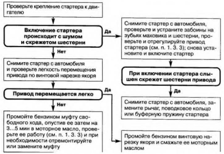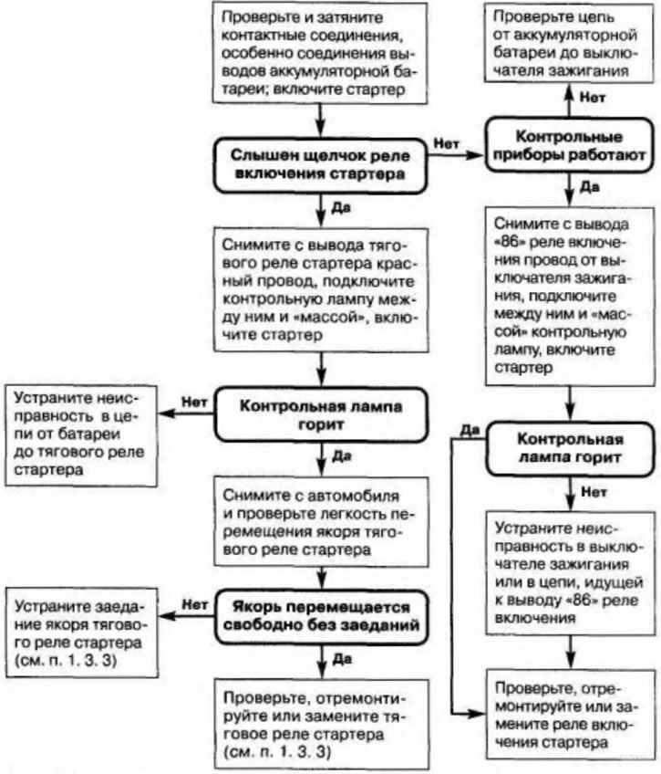 Найти неисправность (естественно, после остановки двигателя и отключения стартера) поможет алгоритм, приведенный на рис. 1.11.